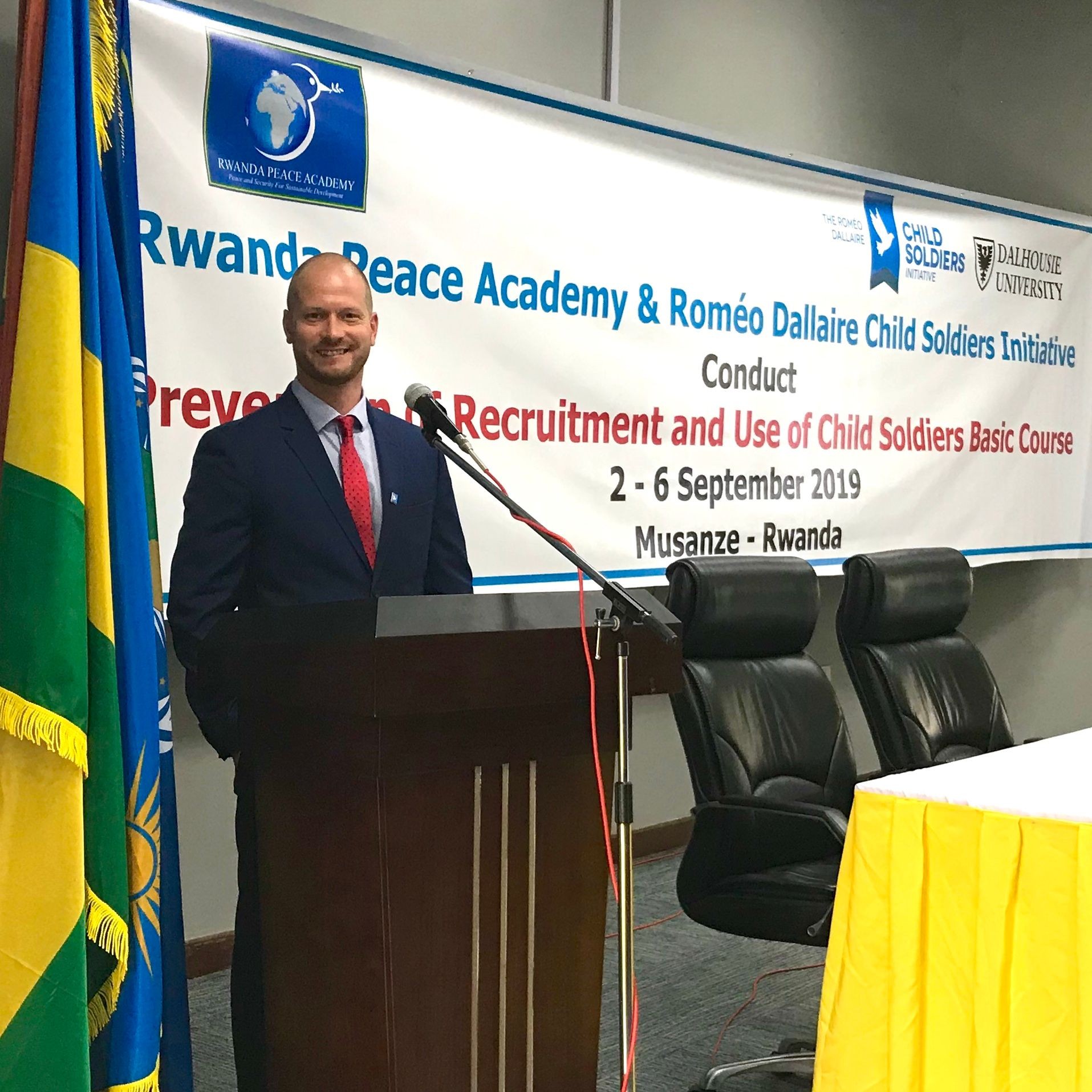 Sam studied International Development at Dalhousie University and gained valuable international experience through his role as a UNPOL officer in Haiti with the United Nations mission MINUSTAH. There, he led the development of a community bicycle patrol unit—later adopted across the country. He also contributed to child protection by training police and military personnel in Rwanda with the Roméo Dallaire Child Soldiers Initiative.
